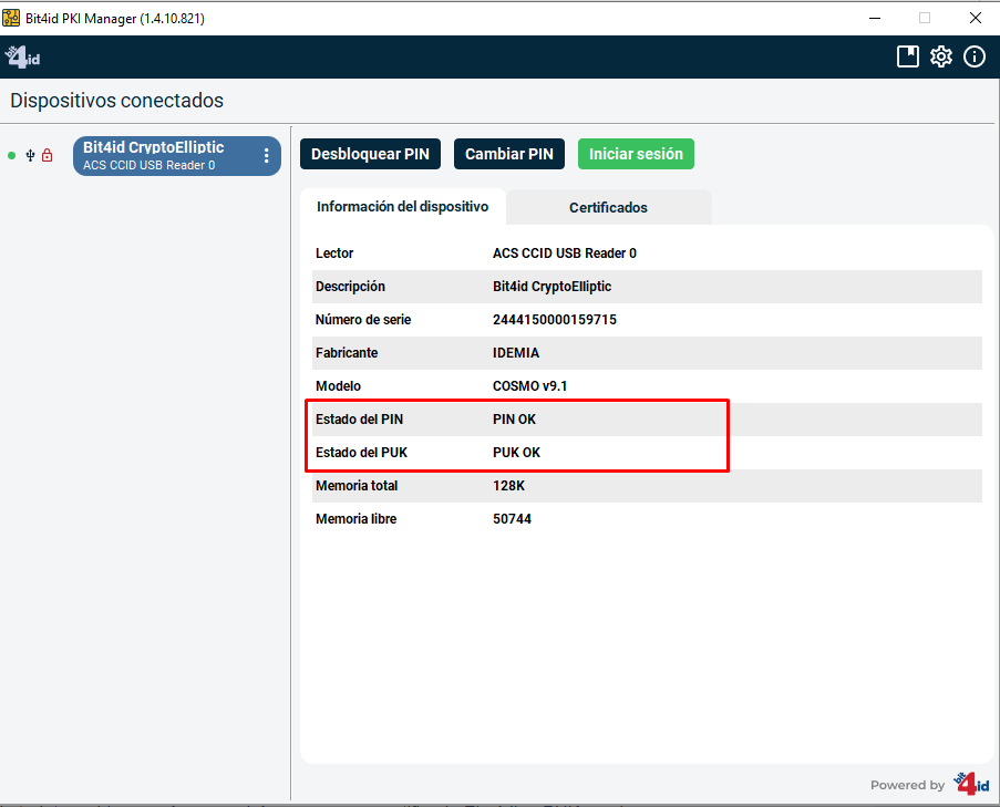 - Abrir el driver bit4Id, versión actual 1.4.10.797 si no la tiene actualizada, puede desinstalarla y descargar la vigente a través de este enlace: BIT4ID: Universal Middleware 1.4.10.821 y conectar la tarjeta.